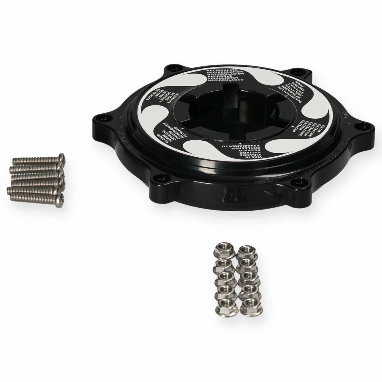 Wanneer de bovenplaat van je Astralpool 6-wegventiel beschadigd is of defect is kun je dit makkelijk vervangen met deze bovenplaat. De bovenplaat van het 6-wegventiel wordt geleverd inclusief bevestigingsmoeren en bouten.
